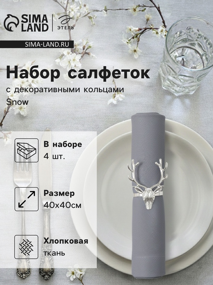 Габариты: 23,5 x 19 x 6,5 Страна: Россия В боксе: 28 набор Состав: Металл, хлопок 100% Материалы: металл, хлопок Фасовка: по 1 набор Индивидуальная упаковка: Термоусадочная пленка Сертификат: ЕАС Набор: Да Цвет: Серый Форма: Квадратная Размер, см: 40 х 40 В наборе, шт.: 4 Тематика: Однотонная Вид упаковки: Коробка Материал: Хлопок Декоративные элементы: Без элементов Рекомендации по уходу: Деликатная стирка при 40 °С, Барабанная сушка запрещена, Не отбеливать Состав ткани: Лён Особенности: Без особенностей Фактурные: Нет Салфетки с кольцами для сервировки стола добавят элегантности вашему праздничному ужину. Этот набор станет изюминкой любого торжества, создавая атмосферу уюта и стиля. Особенности