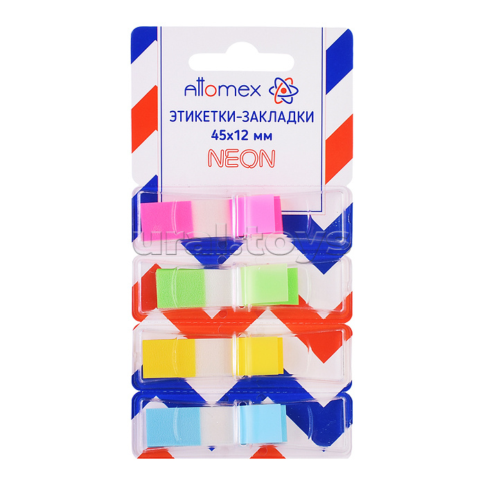 Набор самоклеящихся этикеток-закладок "Attomex" пластиковые полупрозрачные, в индивидуальном диспенсере Z-сложение, 45x12 мм, 4x50 листов, 4 неоновых цвета.
