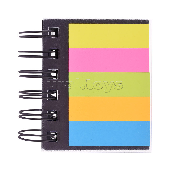 Набор самоклеящихся этикеток-закладок "Book" бумажные 50x15 мм, 5x25 листов и 51x76 мм, 4x25 листов, 5 неоновых цветов, пластиковая обложка, евроспираль, в пластиковом пакете с европодвесом