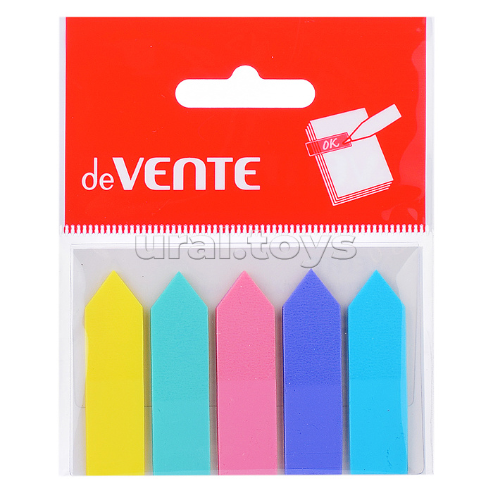 Набор самоклеящихся этикеток-закладок "Pastel" пластиковые полупрозрачные в форме стрелки 45x12 мм, 5x25 листов, 5 пастельных цветов, в пластиковом пакете с европодвесом