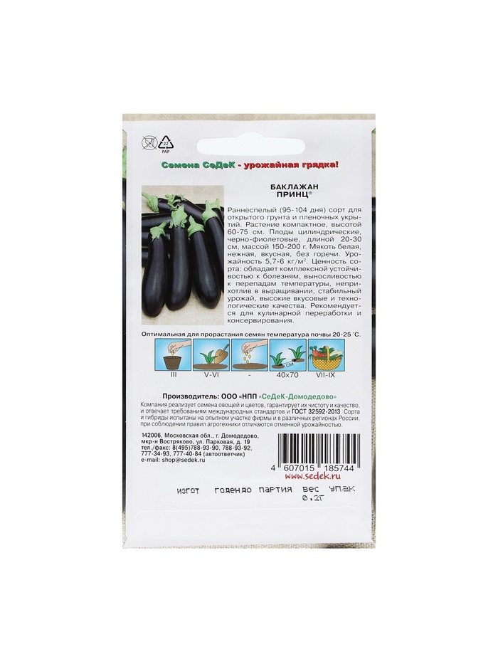 Набор семян Баклажан "Принц "0.2 г , 5 шт.