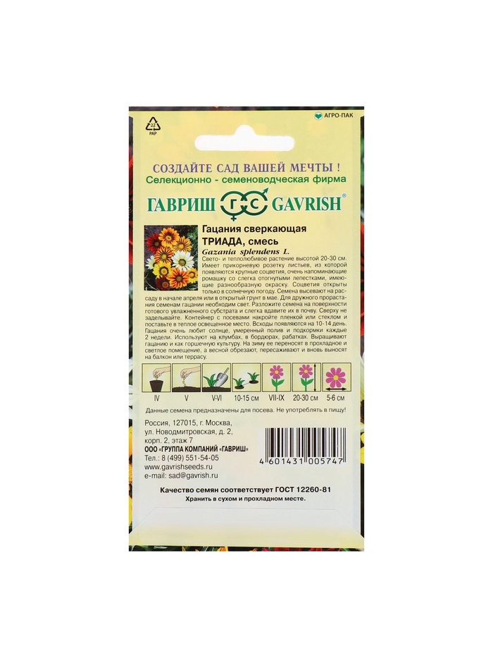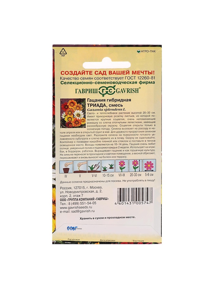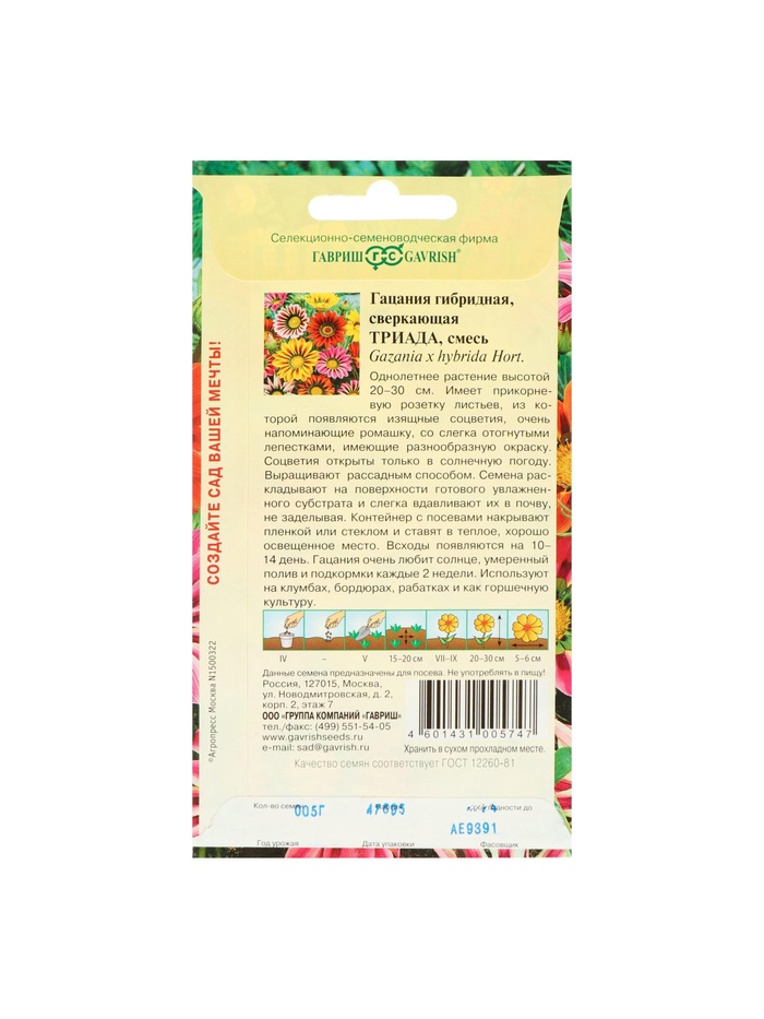 Набор семян Гацания крупноцветковая "Триада", смесь, О, 5 шт.