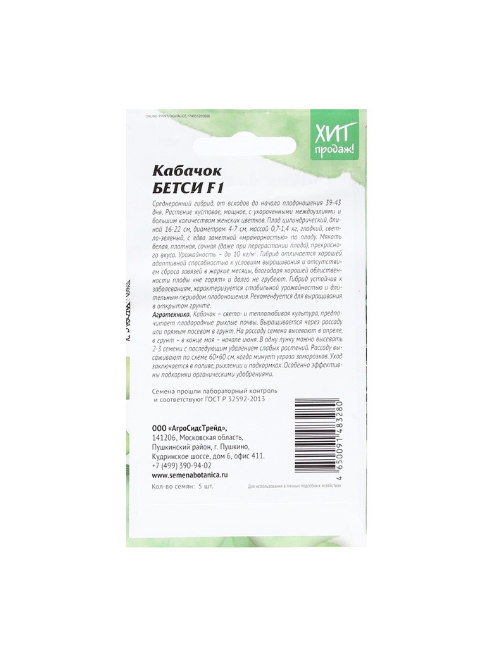 Набор семян Кабачок F1 для длительного плодоношения "Бетси", 5 шт.