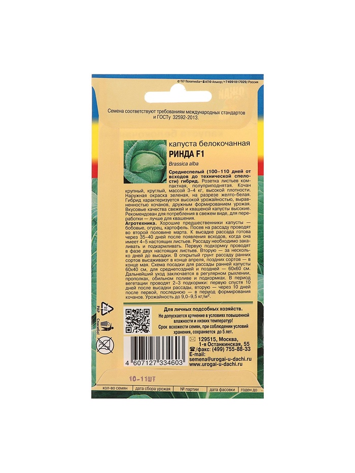 Набор семян Капуста белокочанная «Ринда», 5 шт., «Мой выбор»