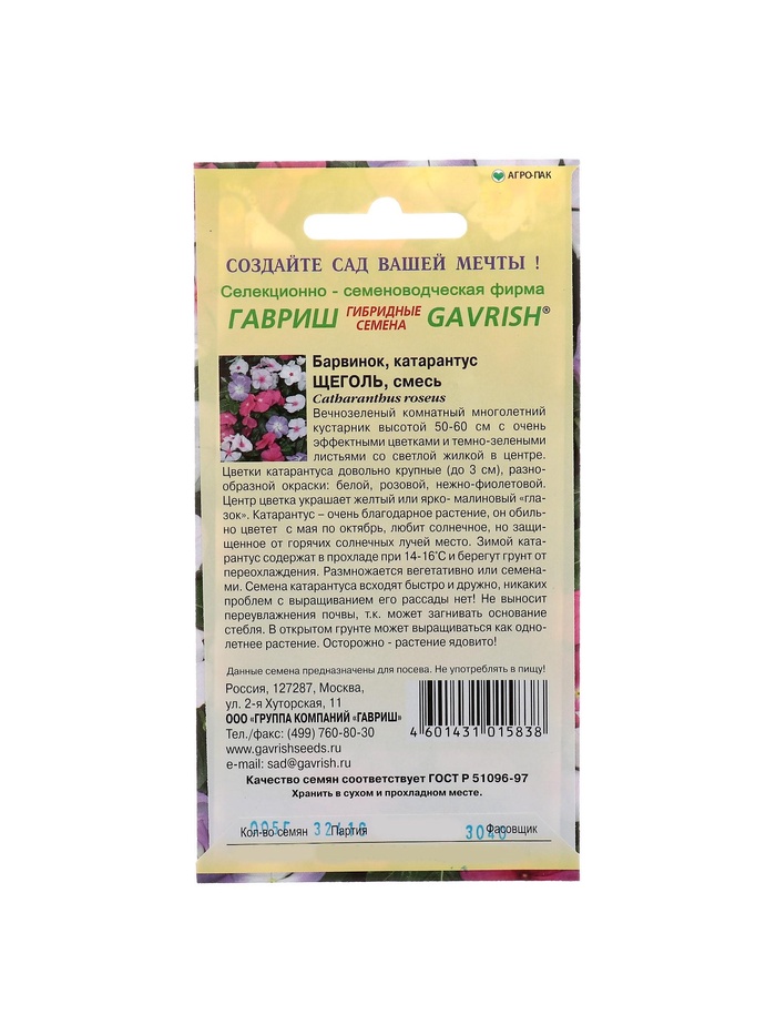 Набор семян комнатных Барвинок "Щеголь", 5 шт.