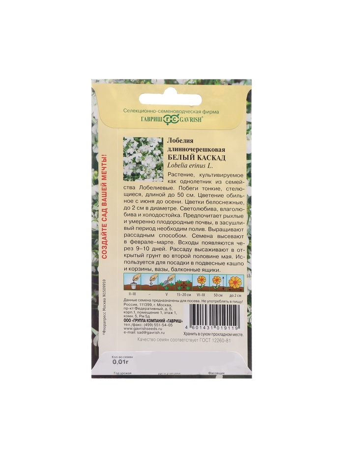 Набор семян Лобелия ампельная "Белый каскад", 5 шт.