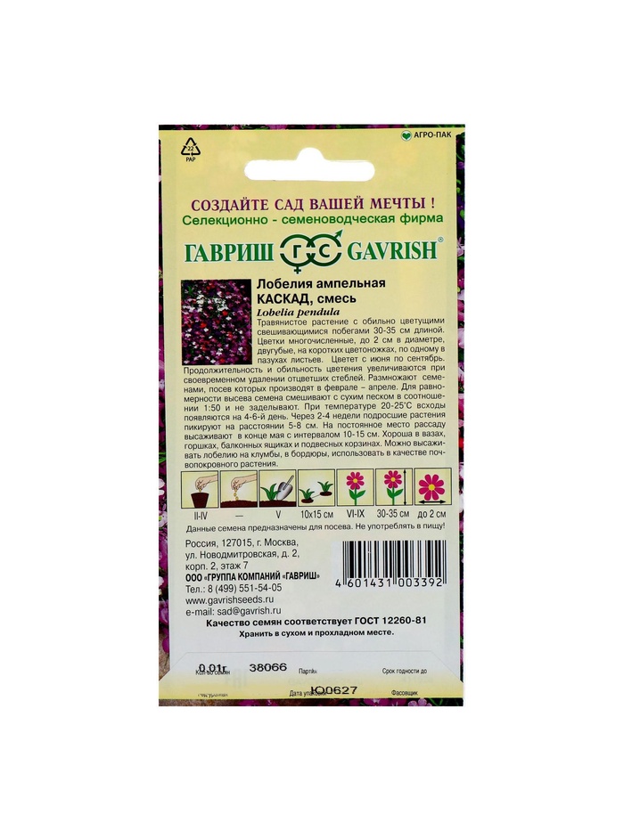 Набор семян Лобелия "Каскад", ампельная, О, 5 шт.