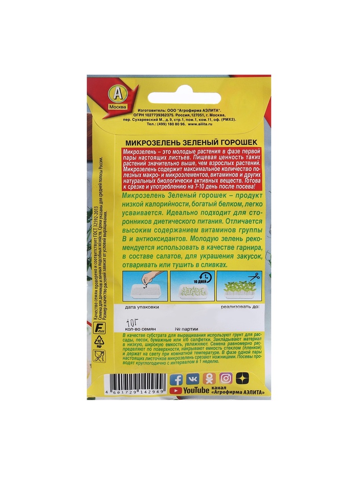 Набор семян Микрозелень Зеленый горошек, 5 шт.