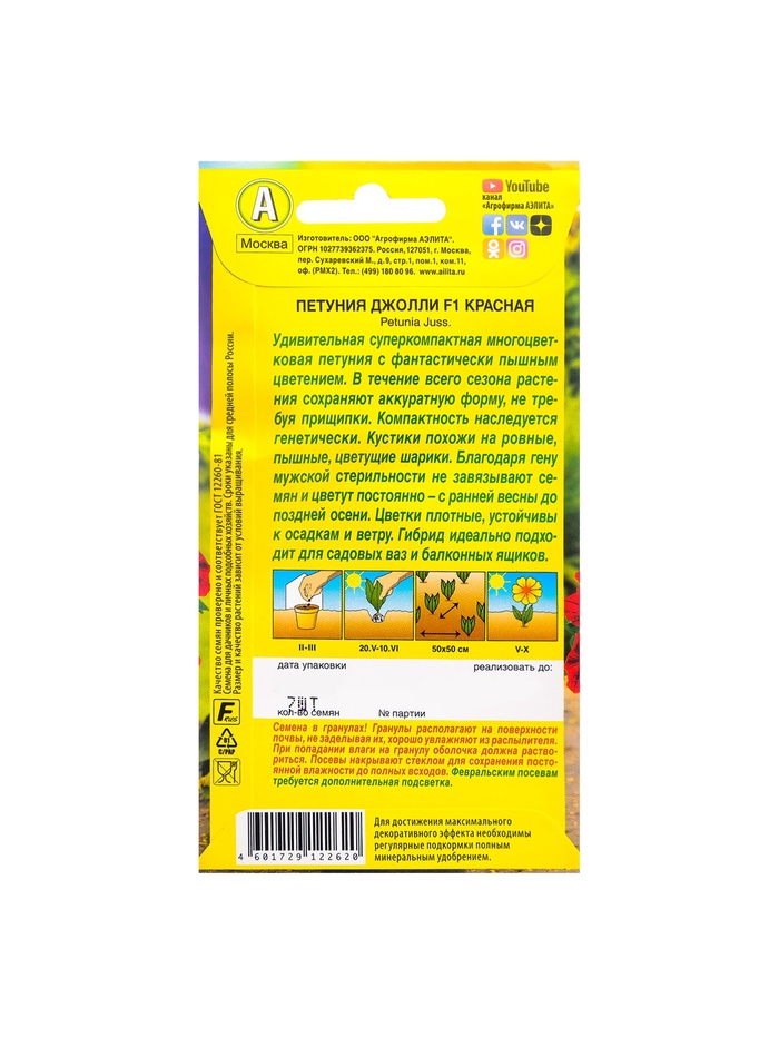 Набор семян Петуния Джолли красная F1 многоцветковая, 4 шт.