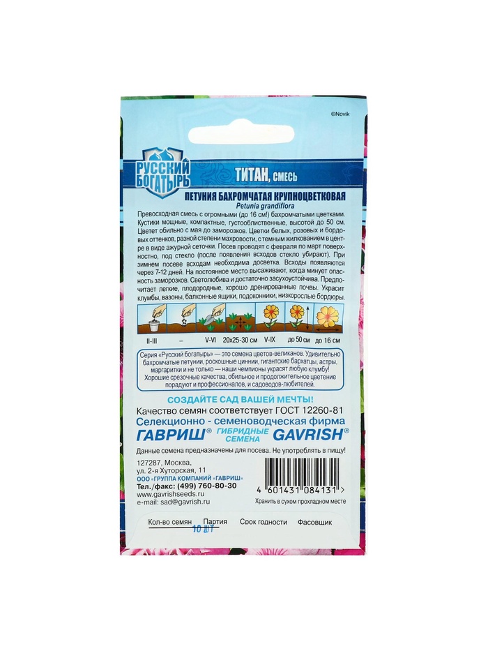 Набор семян Петуния "Титан", бахромчатая, смесь, серия Русский богатырь, 5 шт.