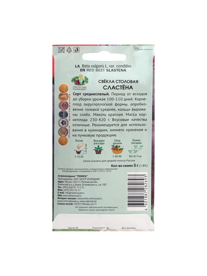 Набор семян Свекла столовая "Сластёна", 5 шт.
