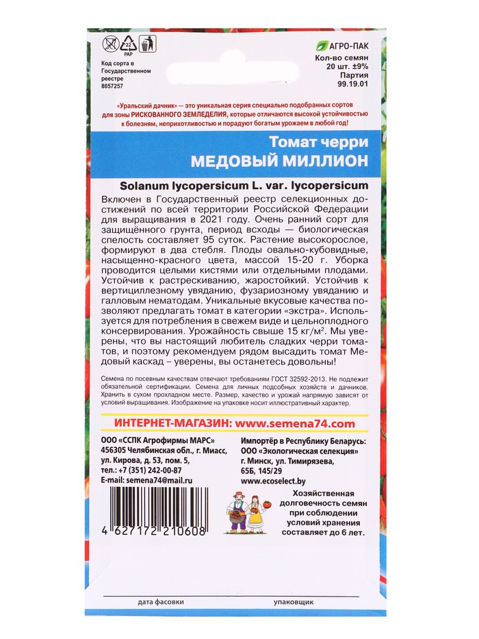 Набор семян Томат "Медовый миллион", черри, 5 шт.