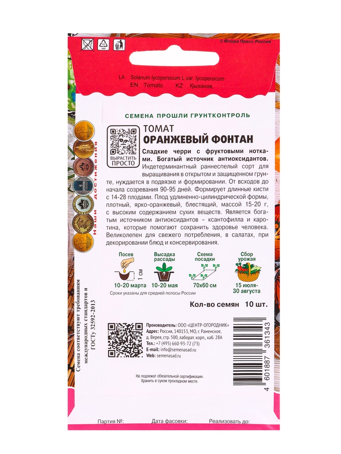Набор семян Томат "Оранжевый Фонтан", 5 шт.