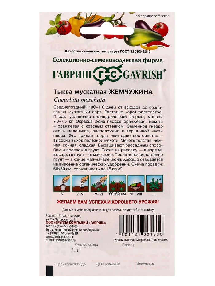Габариты: 15 x 8 x 0,2 Страна: Россия В боксе: 750 шт Состав: Семена Материалы: семена Фасовка: по 1 шт Индивидуальная упаковка: Пакет (БОПП, полиэтилен, ПВХ, дой-пак) Габариты товара: 17 см × 15 см × 5 см Сертификат: Не подлежит сертификации Сроки созревания: Среднепоздний Посев на рассаду: Апрель Посев (посадка) в грунт: Май, Июнь Место выращивания: Открытый грунт Сорт или гибрид: Сорт Цвет плода: Оранжевый Вес: Крупные (от 6 до 10 кг) Вид: Мускатная Комментарии к товару