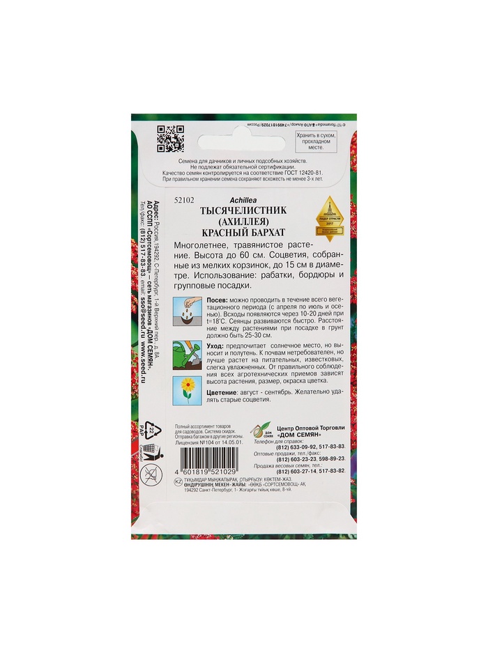 Набор семян Тысячелистник "Ахиллея", 5 шт.