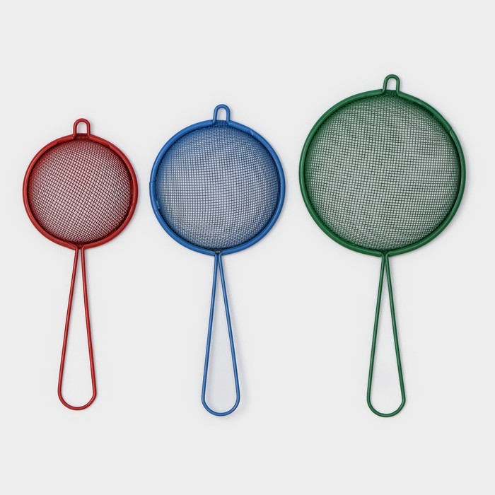 Габариты: 9 x 18 x 3,5 Страна: Китай В боксе: 144 набор Состав: Коррозионностойкая сталь Материалы: Коррозионностойкая сталь Фасовка: по 1 набор Индивидуальная упаковка: Пакет (БОПП, полиэтилен, ПВХ, дой-пак) Габариты товара: 18,5 см × 9 см × 4 см Сертификат: Не подлежит сертификации Набор: Да Цвет: Разноцветный Диаметр, см: 6, 8, 9 В наборе, шт.: 3 Материал ручки: Нержавеющая сталь Рисунок: Нет Материал: Нержавеющая сталь С поддоном: Нет Тип покрытия: Без покрытия Сито — предмет посуды, необходимый в каждой кухне. Именно тщательное просеивание сыпучих ингредиентов позволяет добиться превосходного результата. Сито чаще всего используется для просеивания муки, какао-порошка, сахарной пудры и других мелкодисперсных по своему составу продуктов. Сухая основа для теста, прошедшая через решётку, очищается от посторонних примесей и загустевших комков. Просеянная мука становится более воздушной и насыщается кислородом, создавая нежную консистенцию будущим мучным изделиям. Комментарии к товару