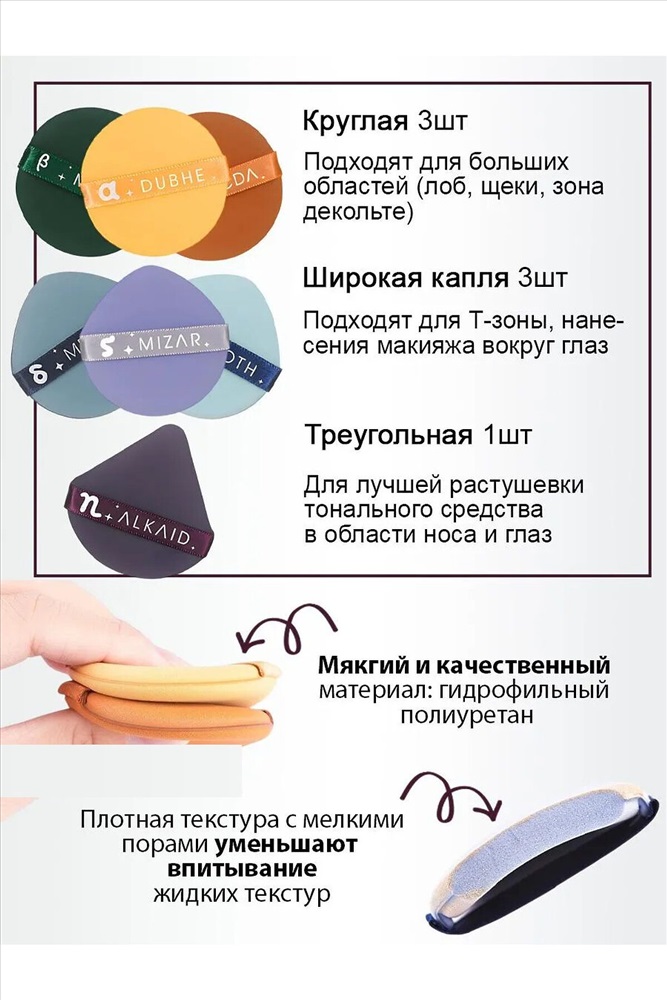 Сезон: Демисезон !!!! ВНИМАНИЕ!!! Выбор цвета невозможен!!! Косметический инструмент - спонж, который поможет вам добиться профессионального результата при создании макияжа. Мы предлагаем набор из 7 спонжей в удобном футляре. Благодаря высокому качеству и уникальным формам, они позволяют равномерно наносить косметику, обеспечивая точность даже в труднодоступных местах. Если вы хотите, чтобы ваш макияж выглядел безупречно, без полос и следов, этот набор именно то, что вам нужно. Каждый спонж имеет свою форму, легко впитывает косметику и равномерно распределяет её по коже, создавая эффектное и долговременное покрытие. Они подходят для всех типов кожи, включая чувствительную, и не содержат латекса и отдушек, что делает их безопасными. Спонжи можно использовать для умывания, снятия макияжа и нанесения косметики. Просто нанесите немного средства и распределите его по коже. Они идеально подходят для нанесения основы, консилера, румян и пудры, обеспечивая превосходный результат в любое время и при любых условиях.