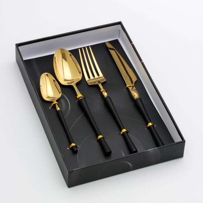 Состав набора: Ложка чайная, Вилка столовая, Ложка столовая, Нож столовый