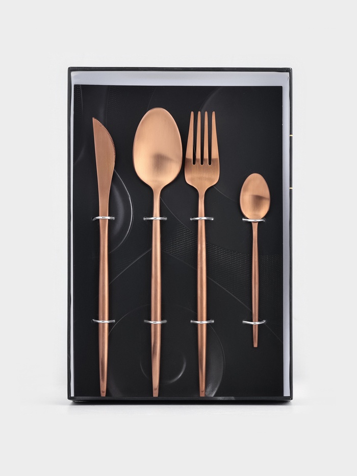 Габариты: 26 x 17,5 x 3 Страна: Китай В боксе: 48 набор В наборе: 4 набор Состав: Нержавеющая сталь Материалы: нержавеющая сталь Фасовка: по 1 набор Индивидуальная упаковка: Картонная коробка Габариты товара: 28 см × 18 см × 3,5 см Сертификат: СТР Набор: Да Цвет: Бронзовый Количество персон: 1 В наборе, шт.: 4 Материал ручки: Нержавеющая сталь Вид упаковки: Коробка картонная Рисунок: Нет Материал: Нержавеющая сталь Для детей до 3 лет: Нет Назначение: Столовые Можно мыть в посудомоечной машине: Нет Цвет ручки: Бронзовый Состав набора: Нож столовый, Вилка столовая, Ложка чайная, Ложка столовая Матовая поверхность: Да Внешний вид: Без особенностей Фиксированная цена: Да Столовые приборы Magistro «Оску базис» с утонченными вытянутыми линиями и красивыми рукоятками изготовлены из качественной нержавеющей стали. Каждый предмет гладко отполирован, а зеркальный блеск с успехом дополняет дизайн. Приборы отлично сбалансированы, удобно лежат в руке и приятны на ощупь. Не подходят для мытья в посудомоечной машине. Комплектация1. Ложка столовая - 1 шт; 2. Вилка столовая - 1 шт; 3. Нож столовый - 1 шт; 4. Ложка чайная - 1 шт. Комментарии к товару