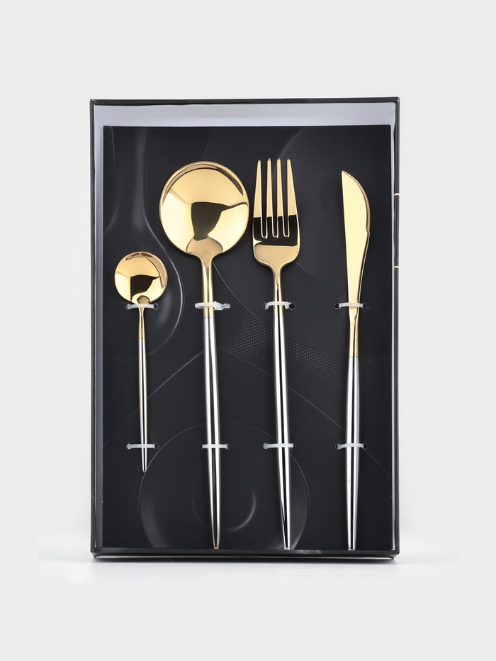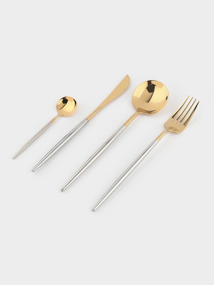 Состав набора: Нож столовый, Вилка столовая, Ложка столовая, Ложка чайная