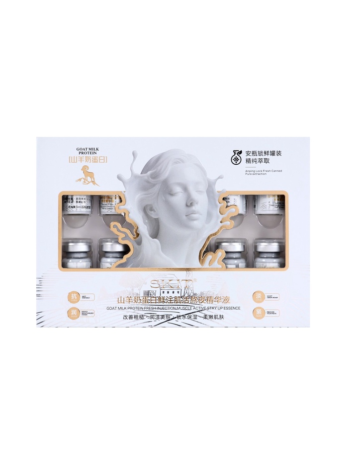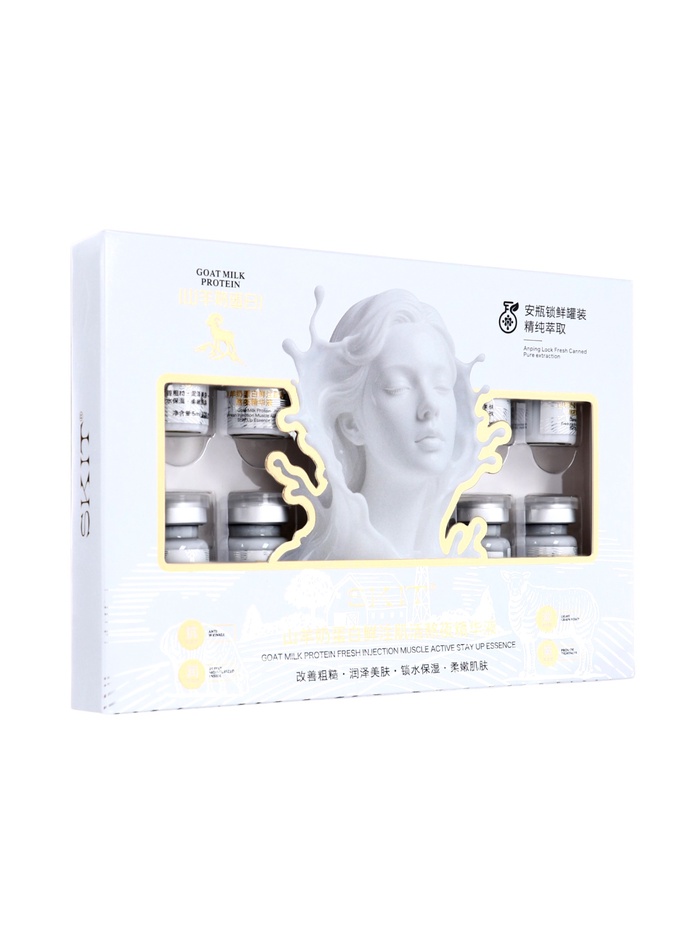 Набор сывороток SKIT — это комплект из 10 небольших флаконов по 5 мл каждая, предназначенный для интенсивного увлажняющего ухода за кожей лица. Средство разработано на основе козьего молока — компонента, богатого витаминами, белками и питательными веществами, которые помогают коже поддерживать оптимальный уровень влаги и усиливают процессы восстановления.