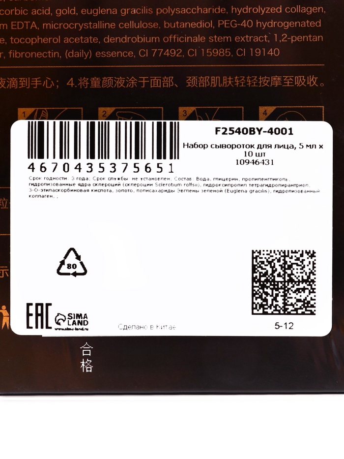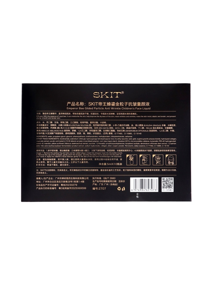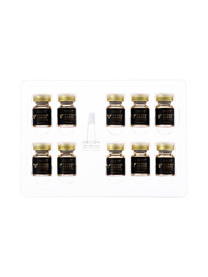 Габариты: 2,5 x 13,5 x 19,5 Страна: Китай В боксе: 100 шт Состав: См. на упаковке Материалы: см. на упаковке Фасовка: по 1 шт Индивидуальная упаковка: Без упаковки Сертификат: ЕАС Вес, г/Объём, мл: 5 Тип кожи: Зрелая, Для всех типов Набор сывороток SKIT представляет собой комплект из 10 мини‑флаконов по 5 мл, разработанный для борьбы с признаками старения кожи и разглаживания мелких морщин. Каждая мини‑сыворотка содержит активные компоненты, которые направлены на увлажнение, укрепление структуры кожи и стимуляцию естественных процессов регенерации. Формула сыворотки способствует улучшению тонуса и упругости кожи, помогает снизить видимость мелких линий, поддерживает эластичность и делает кожу более мягкой и ухоженной. Упаковка в виде набора мини‑флаконов удобно использовать как для домашнего ухода, так и в поездках или курсах ухода, когда требуется усиленное воздействие на кожу. Основные эффекты