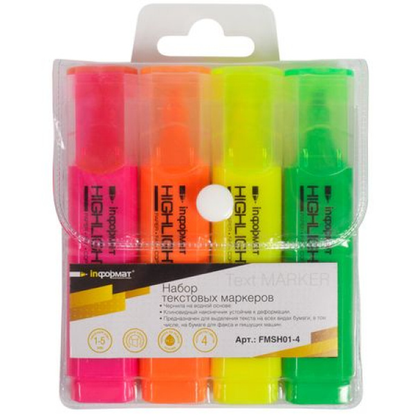 Наименование: Набор текстовыделителей 4цв 1-5мм TEXT FMSH01-4 inФОРМАТ