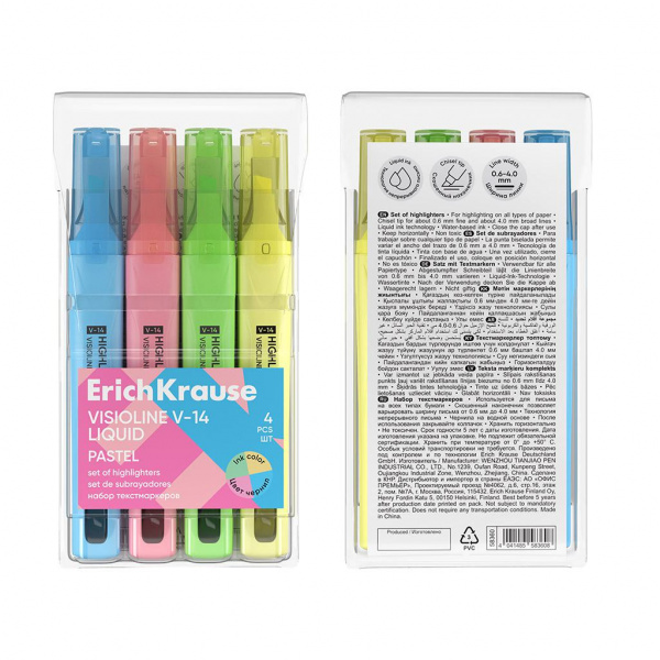 Наименование: Набор текстовыделителей с жидкими чернилами 4цв V-14 пастель 58360 ErichKrause Упаковка: 1\ 12\ 288 Страна: Китай Производитель: ErichKrause min цена: 107,56 руб.