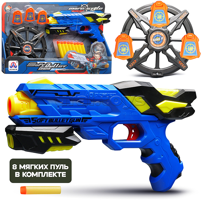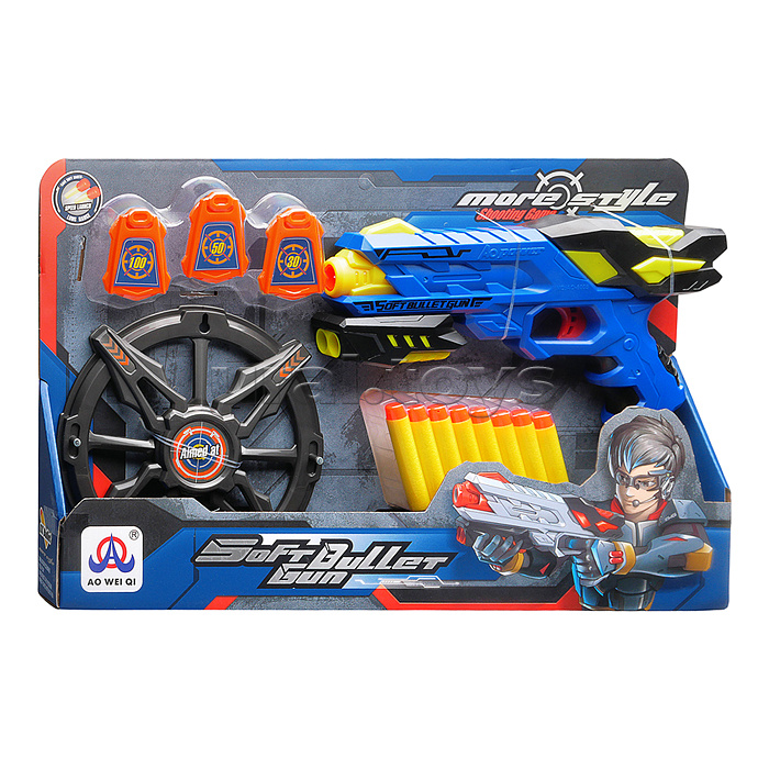 Код: 499813 Штрихкод: 6904110597020 Страна производитель: Китай Размеры упаковки: 5 x 43.5 x 28 см Количество в коробке: 18 В наборе: - пистолет с пневматическим механизмом (25х4х14 см.) - 8 мягких пуль с резиновым наконечником. - пластиковая мишень (17.5х17.5 см.) Материал: пластик. Соответствует требованиям безопасности продукции. Для детей от 3 лет. Комментарии к товару