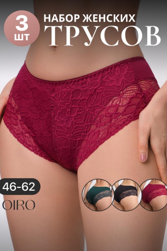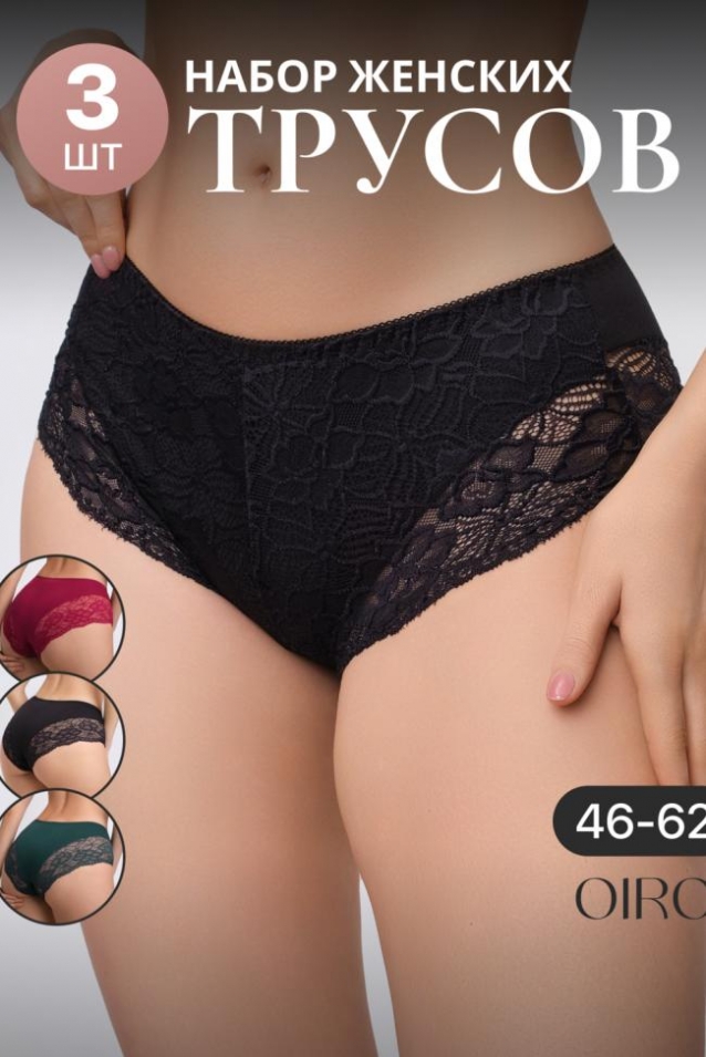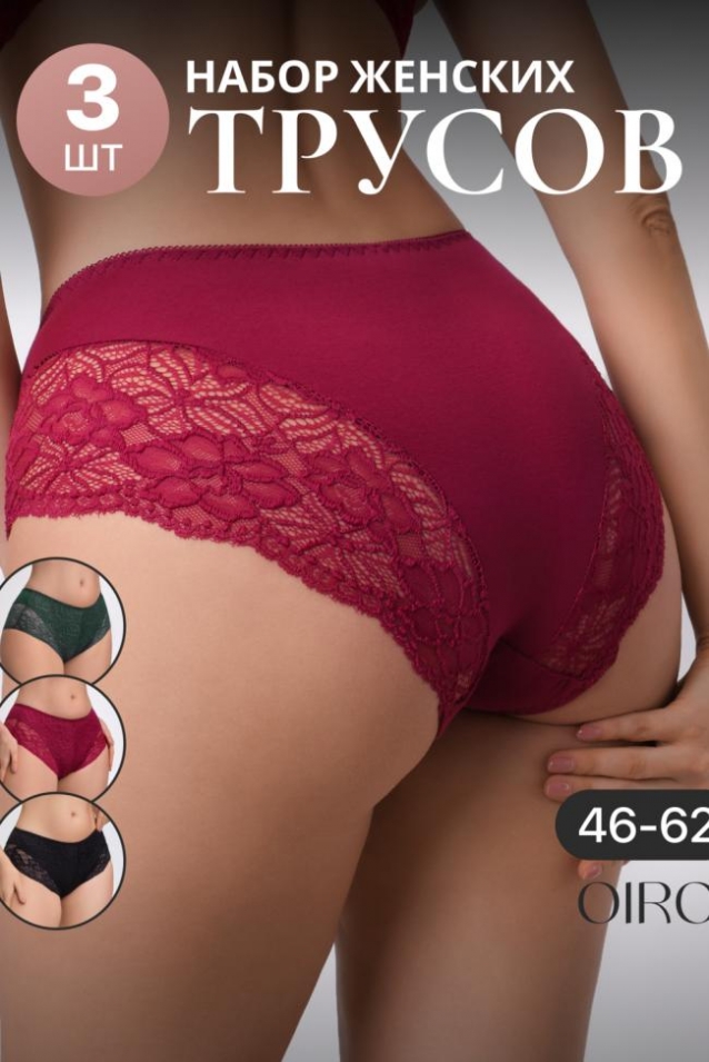 Набор трусов 3 шт. средняя посадка Цвета: черный/бежевый/белый кофе/фиолетовый/розовый черный/бордовый/изумрудный
