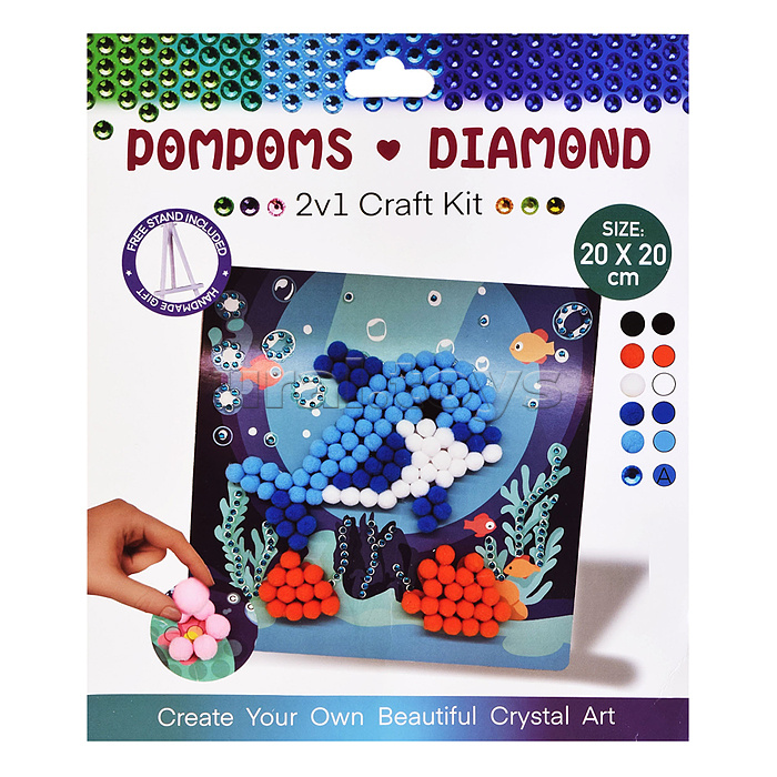 Код: 483714 Штрихкод: 6978459057897 Страна производитель: Китай Размеры упаковки: 26 x 22 x 2 см Количество в коробке: 120 В наборе: - картонная основа 20х20 см. - разноцветные помпоны. Материал: полимерный материал, пластик. Соответствует требованиям безопасности продукции. Для детей от 5 лет. Комментарии к товару