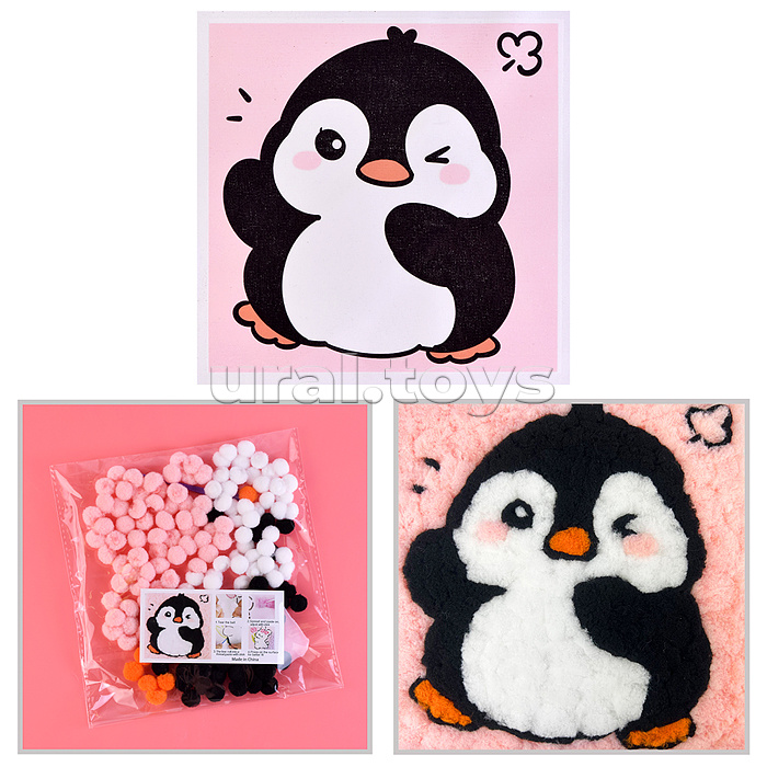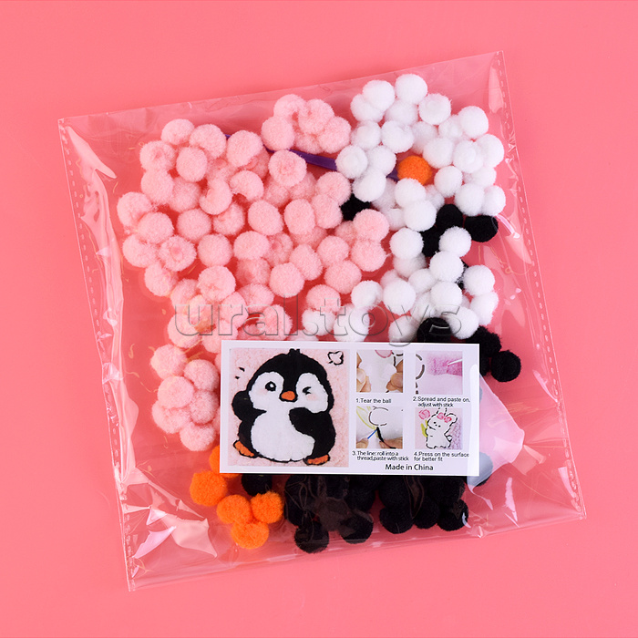В наборе: - картонная основа 22х22 см. - разноцветные помпоны. Материал: полимерный материал, пластик. Соответствует требованиям безопасности продукции. Для детей от 5 лет.