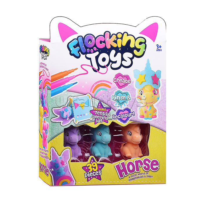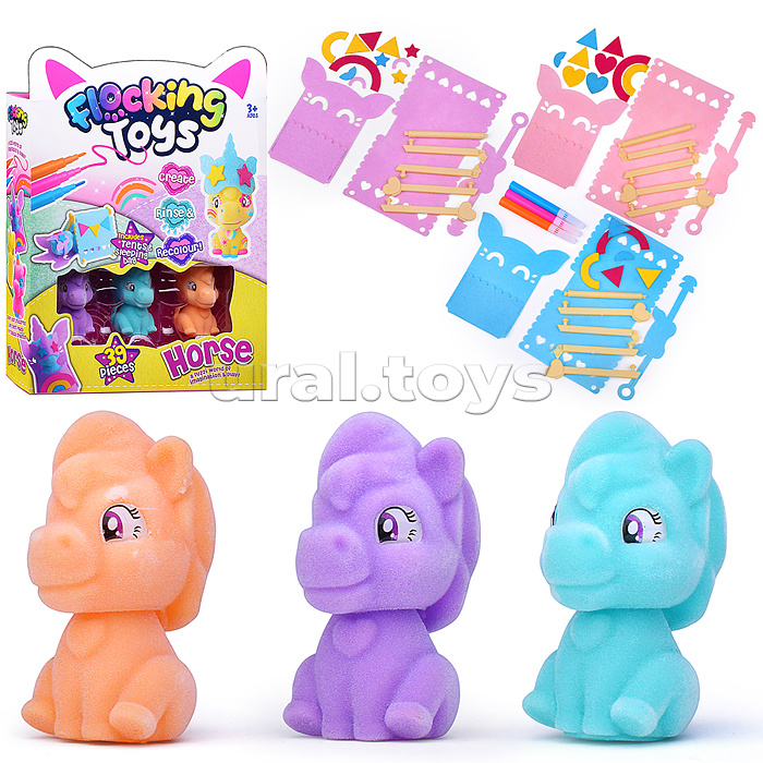 В наборе: - 3 лошадки (3х3,5х6 см.) - 3 набора для рукоделия. - инструкция. Материал: полимерный материал: Соответствует требованиям безопасности продукции. Для детей от 3-х лет.