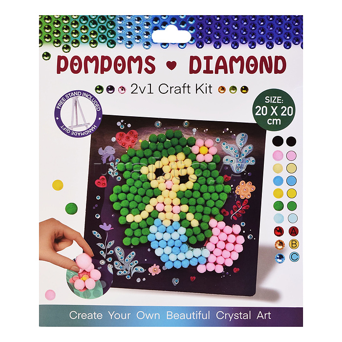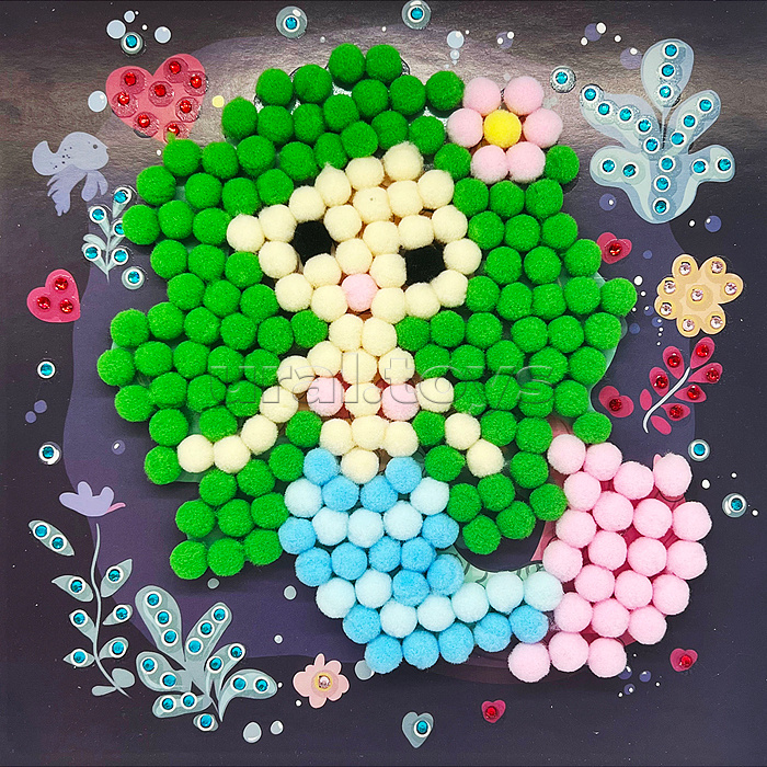 Код: 483716 Штрихкод: 6978459057910 Страна производитель: Китай Размеры упаковки: 26 x 22.5 x 2 см Количество в коробке: 120 В наборе: - картонная основа 20х20 см. - разноцветные помпоны. Материал: полимерный материал, пластик. Соответствует требованиям безопасности продукции. Для детей от 5 лет. Комментарии к товару