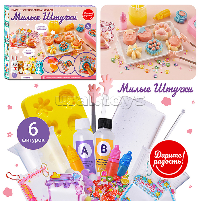 Код: 482247 Штрихкод: 4630432203135 Страна производитель: Китай Размеры упаковки: 30.5 x 6 x 25 см Количество в коробке: 24 • В наборе: - силиконовый клей А. - силиконовый клей В. - мерный стакан (100 мл.) - 2 чашки для смешивания красок (30 мл.) - палочка для перемешивания. - красители (3 цвета) - форма для 6 сквишей (16х11 см.) - помпоны. - пудра. - ворсинки. - декор (фрукты). - поднос (16.5х9.5 см.) - 6 разноцветных цепочек. - 6 ZIP-пакетов (8.5х10 см.) • Для детей от 6 лет. Комментарии к товару
