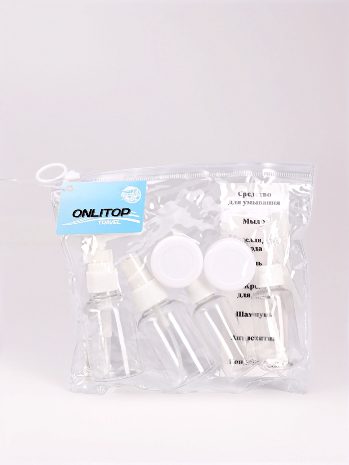Габариты: 19 x 18 x 3 Страна: Китай В боксе: 144 набор Состав: Пластик Материалы: пластик Фасовка: по 12 набор Индивидуальная упаковка: ПВХ-чехол Габариты товара: 20 см × 14 см × 4 см Сертификат: СТР Набор: Да Цвет: Прозрачный В наборе, шт.: 8 Объём, мл: 15, 30, 50 Рисунок: Нет Материал: Пластик Вид крышки: С дозатором, С распылителем, Классическая крышка Составляющие набора: Лопатка, Баночка, бутылочка Вид: Бутылочка, Баночка Чтобы чувствовать себя комфортно в любом путешествии, нужно иметь под рукой всё необходимое. В том числе любимые уходовые средства, шампуни, гель для душа или крем. Наш набор позволит взять с собой все средства в небольших объёмах: они не займут много места и будут лёгкими. Все составляющие набора многоразовые и прослужат ещё не один отпуск. Комплектация