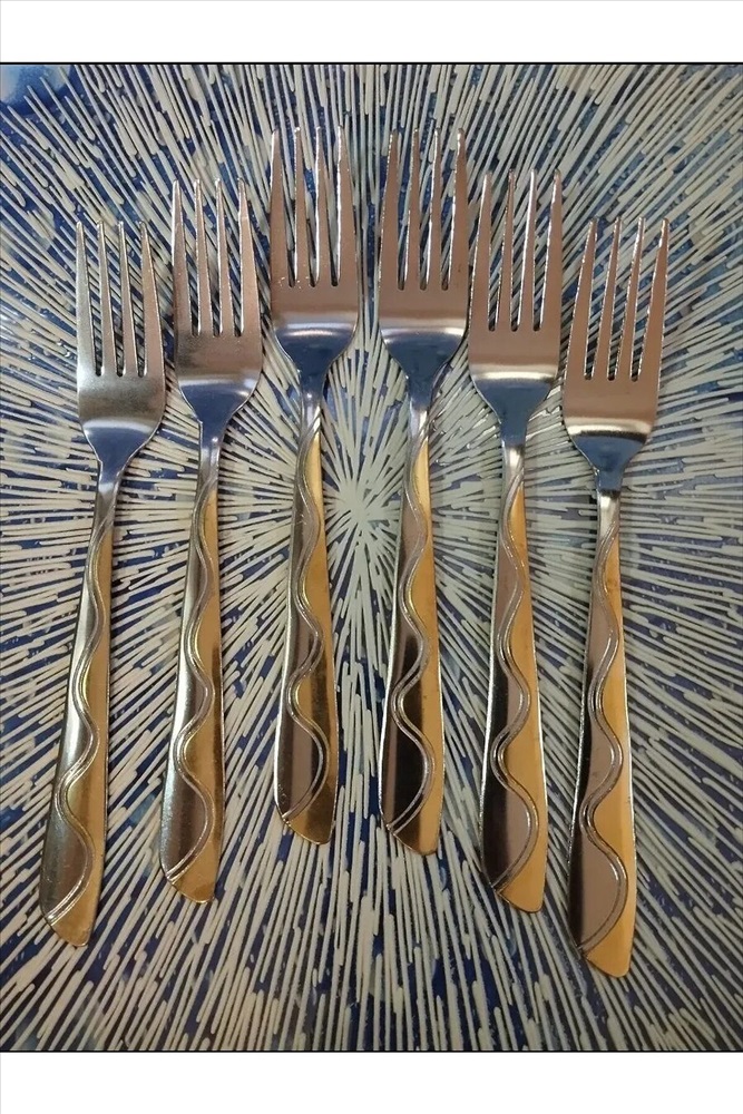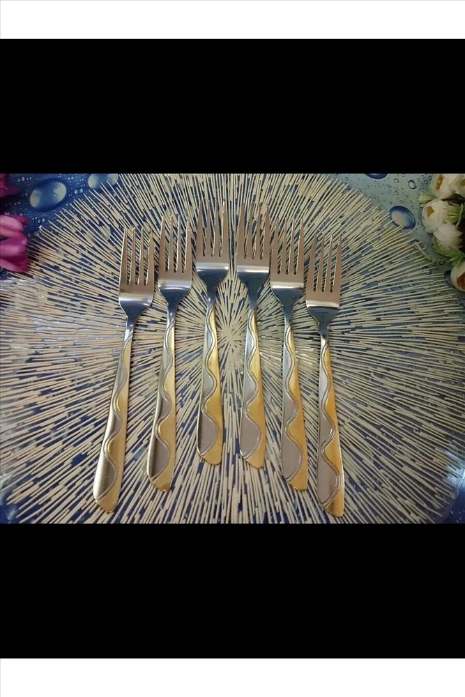 ID товара: 1205516 Сезон: Демисезон Набор из 6-ти столовых приборов отличаются антикоррозийными свойствами и высокой устойчивостью к кислотам и щелочи. Набор вилок выполнен из высококачественной нержавеющей стали, которая проходит тщательный контроль. Такая сталь не изменяет вкус и цвет пищи и не выделяет вредные вещества. Ручки столовых приборов украшены красивым стильным узором под золото. Стильный набор столовых приборов станет настоящим украшением любого праздничного или обеденного стола. Внимание! Перед первым применением тщательно промойте приборы для сервировки мягкой губкой с моющим средством. Комментарии к товару