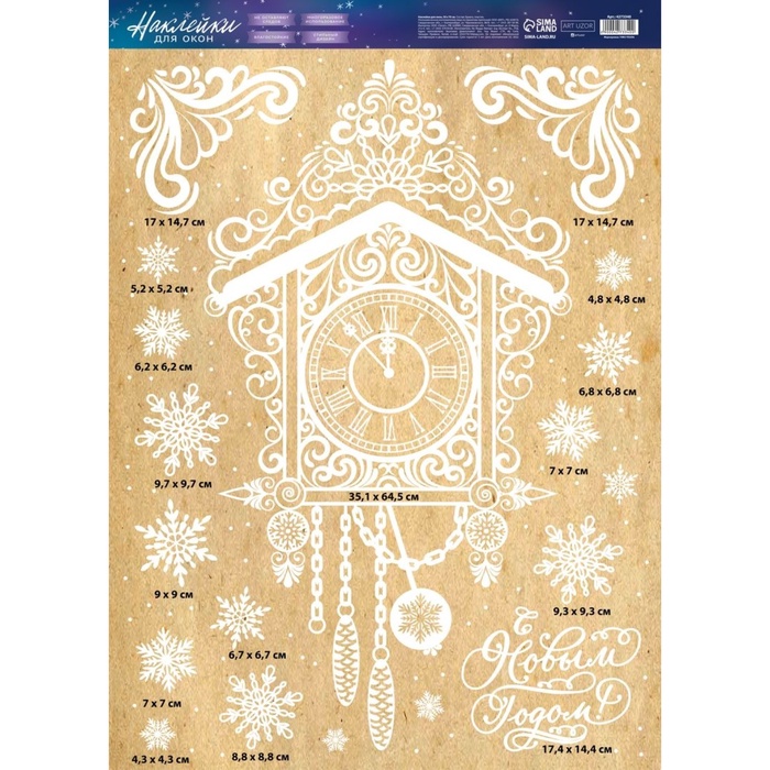 Габариты: 70 x 50 x 0,1 Страна: Китай В боксе: 250 шт Состав: Бумага, пластик Материалы: бумага, пластик Фасовка: по 1 шт Индивидуальная упаковка: Пакет (БОПП, полиэтилен, ПВХ, дой-пак) Габариты товара: 50 см × 0,1 см × 70 см Сертификат: Не подлежит сертификации Набор: Нет Тематика: Новогодняя Символ года: Нет Тематика праздника: Новый год Материал: Винил Многоразовые: Да Вид наклейки: Для окон, Многоразовые Наклейка двухсторонняя: Да Комментарии к товару