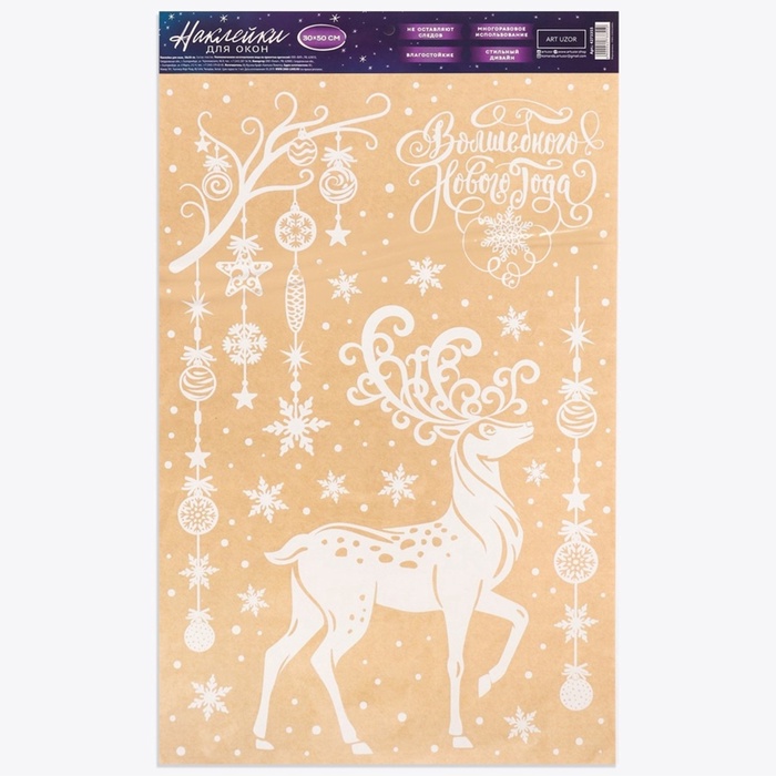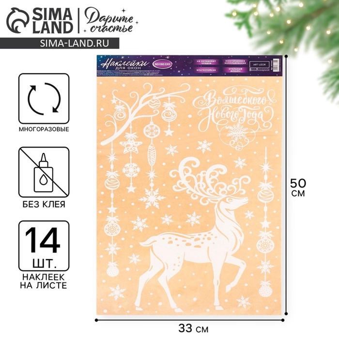 Наклейки на окна многоразовые «Волшебного Нового года», 33×50 см