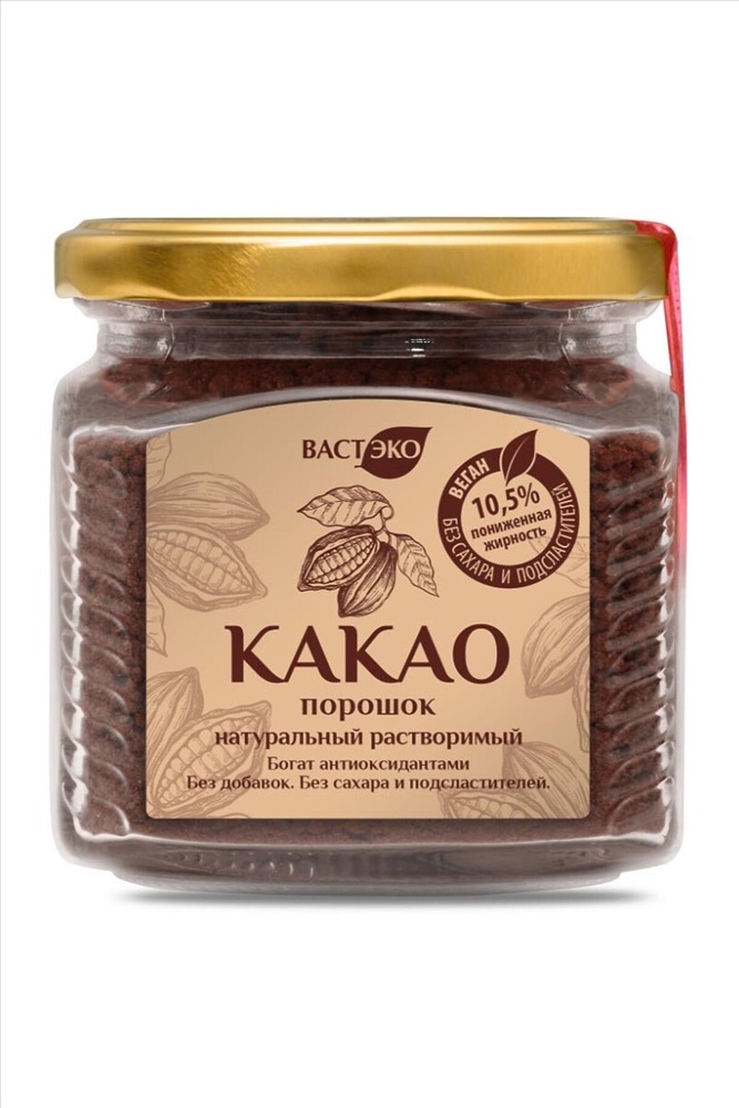 Производитель: ЭКОПРОДУКТЫ ID товара: 1184346 Состав: Какао-порошок со сниженным содержанием жира Сезон: Демисезон Производитель: Вастэко Срок годности (мес): 24 Вес: (г), 200 Страна бренда: Россия Страна производства: Россия