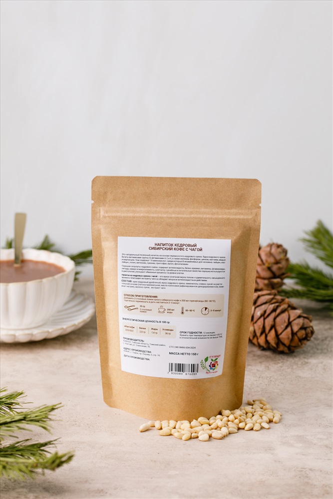 Кедровый орех — это источник полезных жиров, витаминов и минералов, способствующий поддержанию вашего здоровья и улучшению настроения. В сочетании с патокой крахмальной и рафинированным кокосовым маслом, напиток приобретает деликатную кремовую текстуру, которая удовлетворит даже самых взыскательных ценителей вкуса. С добавлением экстракта чаги, "Сибирский кофе" становится не только лакомством, но и целебным элементом в вашем рационе.