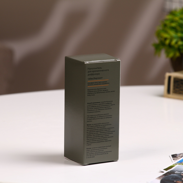 Габариты: 4,5 x 4,5 x 11 Страна: Россия В боксе: 12 шт Состав: См. на упаковке Материалы: см. на упаковке Фасовка: по 1 шт Индивидуальная упаковка: Термоусадочная пленка Сертификат: Не подлежит сертификации Объём, мл: 100 Вид ароматизатора: Диффузор Аромат: Гвоздика, Жасмин, Анис, Табак, Бобы тонка, Ваниль, Белый мускус, Бергамот Наполнитель- это сменная жидкость для аромадиффузора, представляющая собой оригинальную ароматическую композицию в более простой упаковке и используется после опустошения основного флакона. Приобретённый в такой упаковке парфюм можно перелить в имеющийся флакон, предварительно его промыв, чтобы избежать искажения аромата. Наша жидкость для аромадиффузора изготовлена из безопасных и экологичных материалов, обеспечивая постоянное ощущение тонкого аромата, поэтому важно высокое качество продукта. Срок службы ароматического состава во флаконе составляет до трёх месяцев, в зависимости от условий использования и влажности в помещении. НОТЫ АРОМАТА: