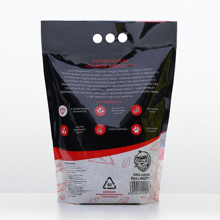 Габариты: 27 x 20 x 12 Доставка: Платная Страна: Россия В боксе: 1 шт Состав: Силикагель, диатомит Материалы: силикагель, диатомит Фасовка: по 1 шт Индивидуальная упаковка: Без упаковки Сертификат: Не подлежит сертификации Впитываемость, л: 5 Состав наполнителя: Силикагелевые Вид: Гранулы Можно смывать в унитаз: Нет Вес/Объём: 2.5 кг Наполнитель «Пижон Premium» силикагель + диатомит для кошачьего туалета представляет собой смесь природных минералов с пористой структурой и твёрдого сорбента гидрофильного типа. «Пижон Premium» сочетает в себе отличительные качества натурального минерального наполнителя и непревзойдённые свойства силикагеля. Силикагель – это отличный материал для кошачьих наполнителей. Он изготавливается из высушенного геля, образующегося из перенасыщенных растворов кремниевых кислот, способного быстро впитывать жидкость и неприятные запахи Диатомит – это природный минерал, состоящий из окаменелых организмов. Он обладает уникальными свойствами, которые делают его идеальным для использования в качестве наполнителя для кошачьих лотков. ПРЕИМУЩЕСТВА: 1. Отлично впитывает влагу и удерживает неприятные запахи. Диатомит и силикагель обладают высокой впитывающей способностью, что позволяет им эффективно удерживать запахи и жидкость. 2. Обладает бактерицидными свойствами. Наполнитель не содержит химических добавок и ароматизаторов. Обладает антибактериальными свойствами, что помогает предотвращать размножение бактерий и грибков в лотке. 3. Не требует частой замены. Одним из основных преимуществ силикагеля является его длительный срок службы. В отличие от других типов наполнителей, которые необходимо менять каждую неделю, силикагель может использоваться до 30 дней без замены. Способ применения: