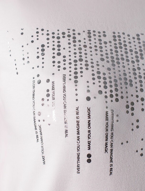 Стильная базовая футболка черного цвета с серебристым принтом фольгой выполнена из плотного хлопка с эластаном для комфортной посадки на любую фигуру. Прямая футболка классического кроя с круглым вырезом, прекрасно подходит для разных типов фигуры, в том числе и на большие размеры. Мягкость хлопка вместе с небольшой долей эластана гарантирует идеальную посадку и свободу движений. Легкая натуральная дышащая ткань премиального качества делает футболку с коротким рукавом идеальным вариантом для повседневной носки дома, на работу или офис. Однотонная футболка дополнена авторским аккуратным принтом с изображением леопарда, который придает праздничный и элегантный вид без лишней вычурности. Блестящий анималистичный принт аккуратно украшает, добавляя изысканный акцент и создавая легкий мерцающий эффект.