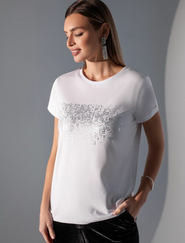 Эта эффектная футболка станет отличным выбором на праздник, подчеркивая образ сияющей и уверенной в себе девушки или женщины. Если вы ищете комфортный и одновременно привлекательный наряд для особых моментов, эта