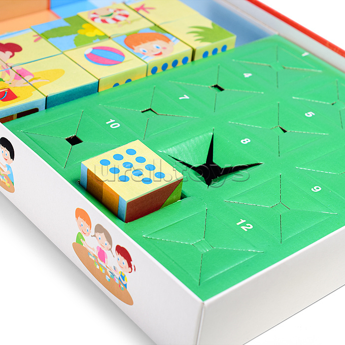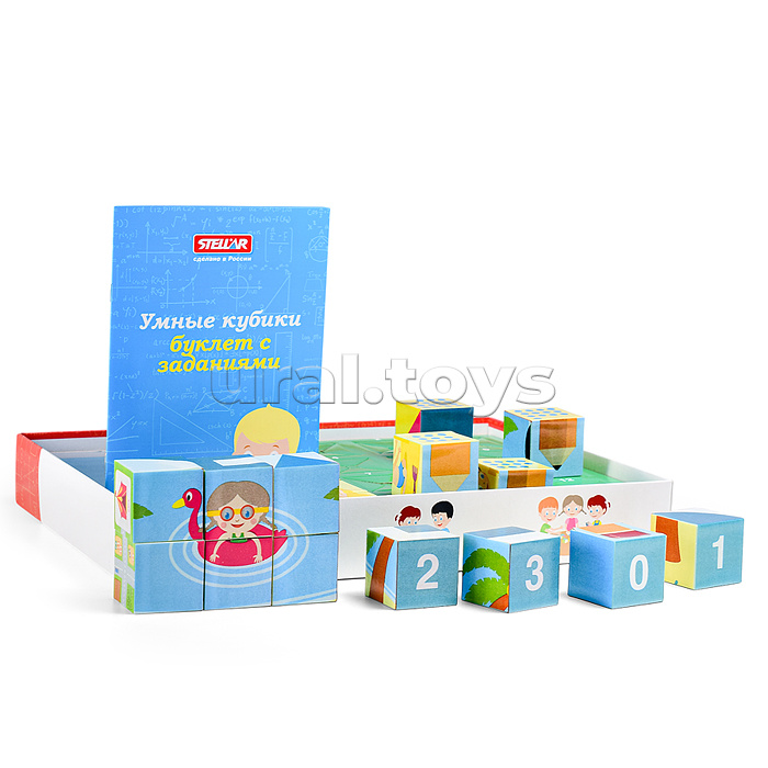 • В наборе: - 24 пластиковых кубика. - буклет с заданиями. • Материалы: картон, пластик. • Соответствует требованиям безопасности продукции. • Для детей от 3-х лет.