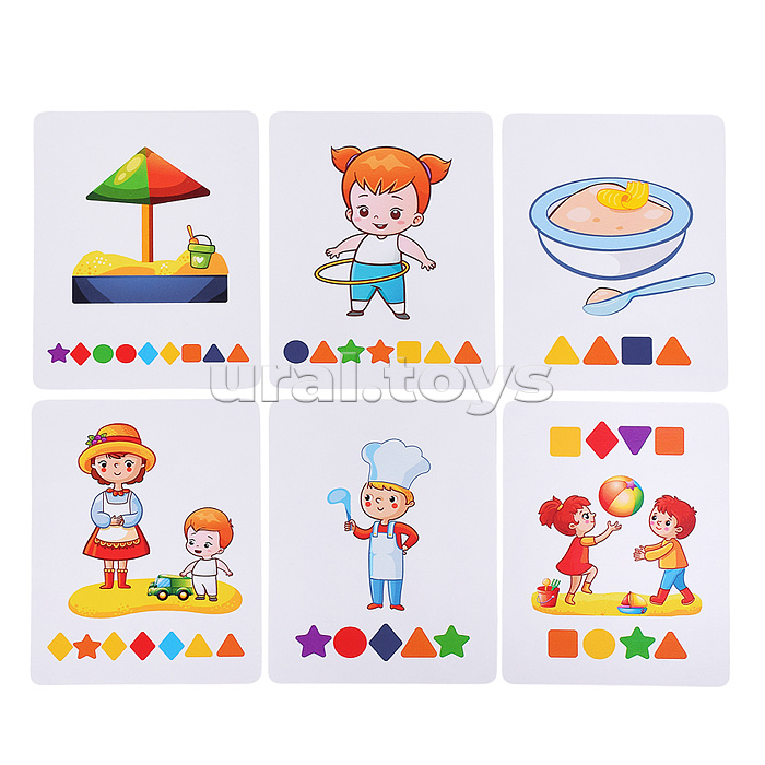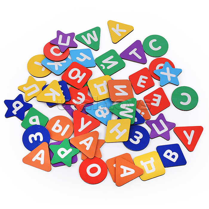 В наборе: - 25 карточек. - 50 деревянных фигур с буквами. Материал: дерево, картон. Соответствует требованиям безопасности продукции. Для детей от 3 лет.