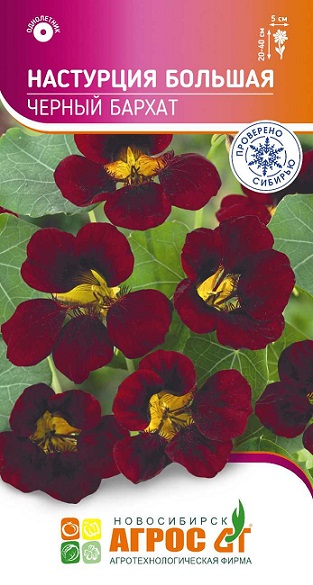 Растение однолетнее, карликовое, с многочисленными побегами. Цветы крупные, диаметром до 5 см, темно-бордовыми цветками, расположенными поверх темнозеленых листьев. Настурция теплолюбива. Любит рыхлые влажные почвы и светлые солнечные места. На богатых почвах бурно растет в ущерб цветению. Поливают обильно. На рассаду высевают в апреле или в открытый грунт в мае. Всходы появляются через 14-20 дней. Оптимальная температура для всходов 15-18 °С. Карликовую настурцию высаживают на рабатках, в бордюрах, контейнерах. За счет пестро окрашенных листьев настурция декоративна даже до цветения. Листья, цветки и недозрелые семена настурции можно употреблять в пищу.