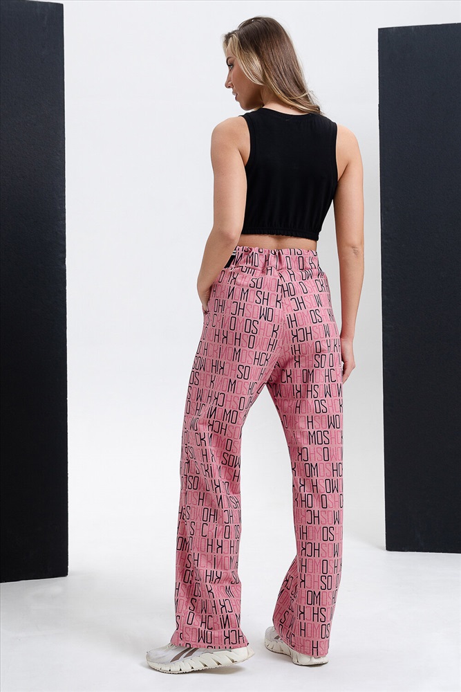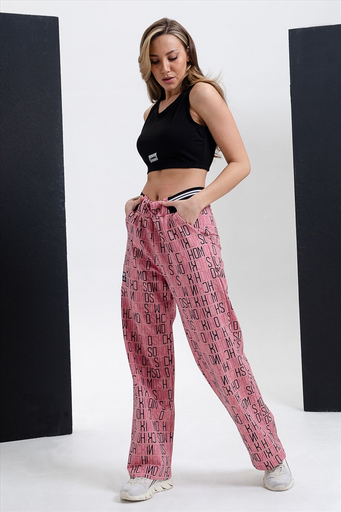 Брюки прямые, с боковыми карманами, на поясе. Боковые вставки пояса выполнены из кашкорсе с лампасами.