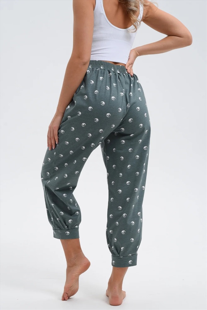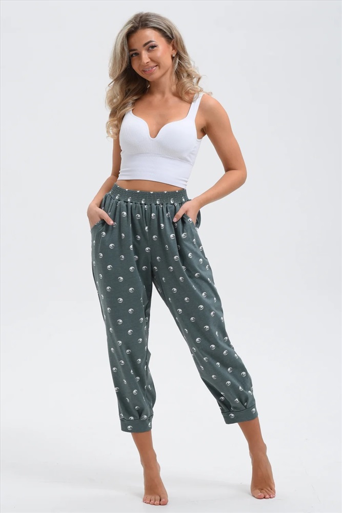 Брюки женские, бананы, внизу передней и задней части по две встречные складки, манжеты. В брюках удобные внутренние карманы, пояс выполнен на многоигольной машине.